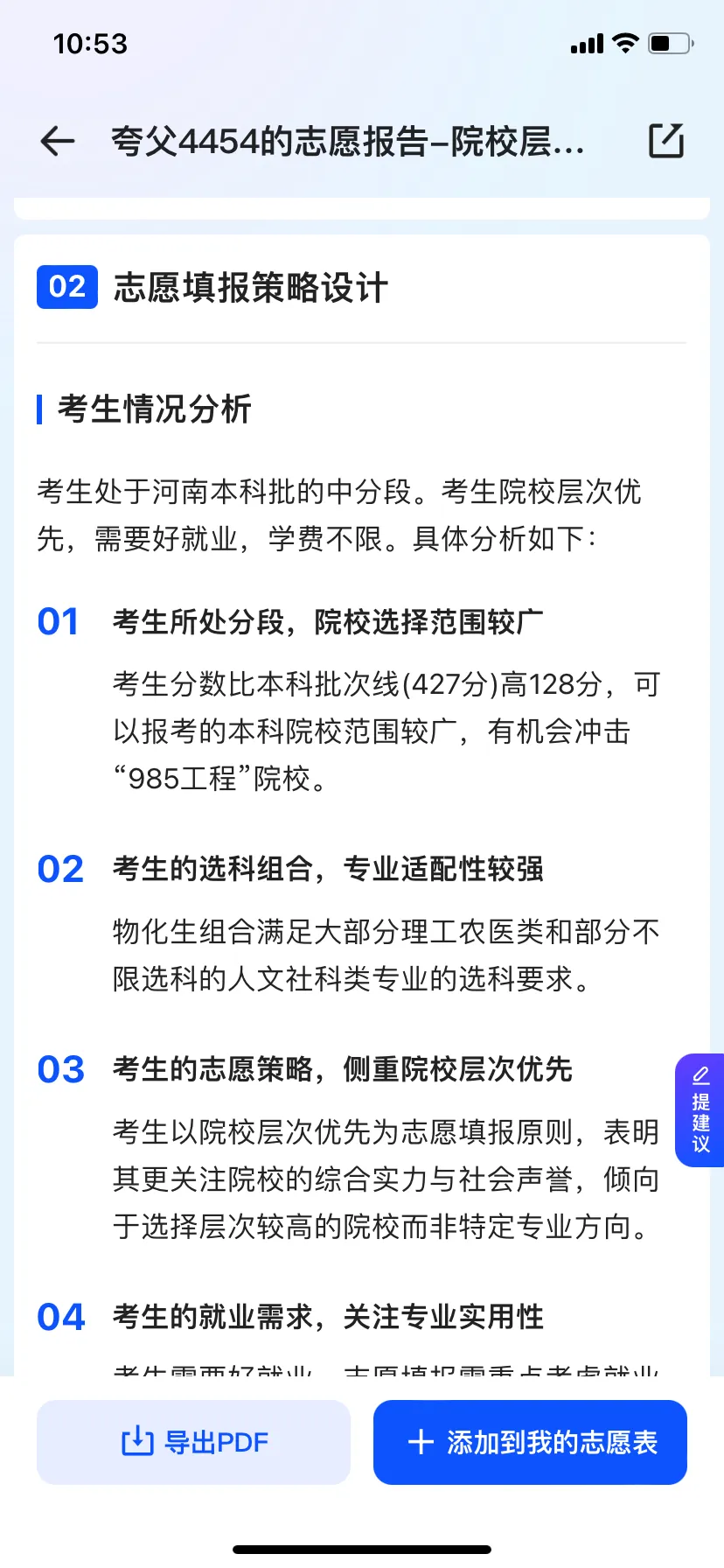 這個功能着重於個性化的場景。當考生對自己的選擇有傾向性或者大概方向時,夸克便能從多種方面去進行分析,更進一步地深入輔助報考,就像一份私人定製的志願報考表,體驗感更全面,給到更貼合考生需求的推薦。