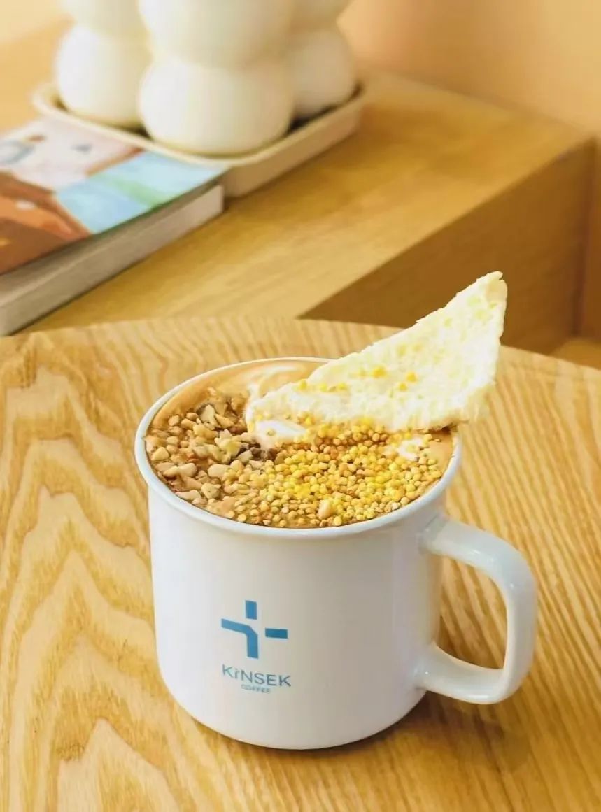 **當你喝上一口,首先感受到的是温柔奶香,緊接着,咖啡的醇厚味道逐漸浮現,二者相互交融,口感層次豐富,讓人陶醉。**而巴旦木碎與塔爾米的加入,更是為這杯咖啡增添了一份堅果的香脆,每一口都充滿了驚喜。