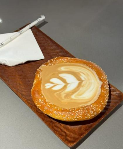 製作饢咖啡時,咖啡師會先準備好新鮮的拿鐵。隨後,咖啡師小心翼翼地將濃縮咖啡倒入饢的中心凹槽處,棕黑色的咖啡液在金黃的饢上顯得格外誘人。