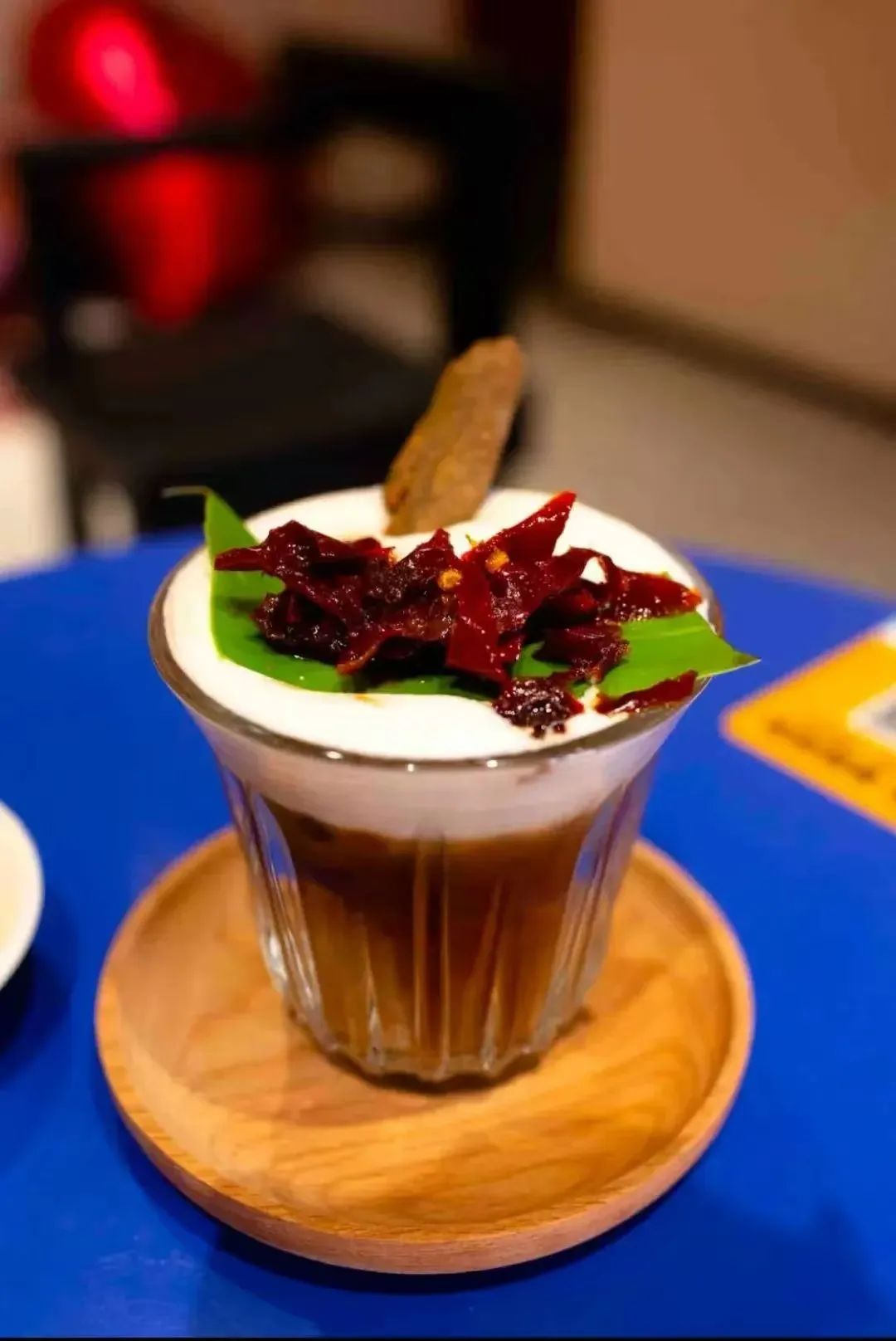 辣皮子拿鐵,絕對是一款讓人又愛又“怕”的咖啡。安集海拉皮子的辛辣鹹香能夠巧妙中和拿鐵的甜膩,這種辣與甜的奇妙組合,就像在吃炒米粉時來一杯奶茶,又辣又爽,越喝越上癮。每一口都刺激着你的味蕾,讓你欲罷不能。
