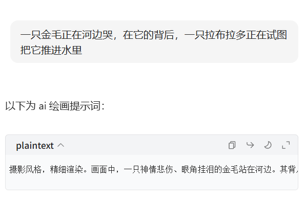 接着,讓 AI 幫你按照它寫的劇本,生成包含畫面、鏡頭、光影等細節的生圖提示詞。
