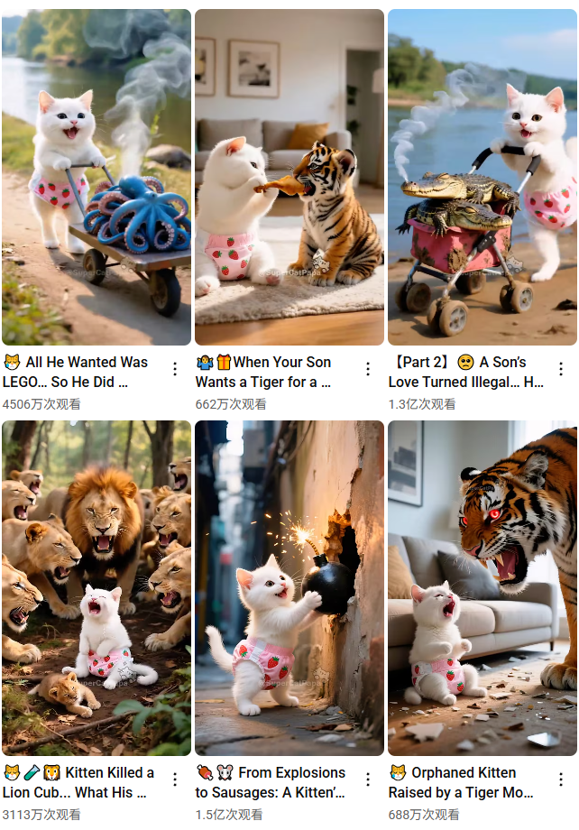 從此,無數創作者被打通了任督二脈,AI****動物+無腦劇本成了流量的標準公式。