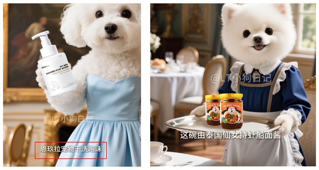 小紅書上一個專門做比熊 AI 短劇的賬號,雖然只有 1.3w 的粉絲,但帖子點贊上萬是家常便飯。已經能和真正的短劇一樣,在視頻裏中插廣告。據新聞報道,光是廣告,現在這個賬號已經做到月入 50w。