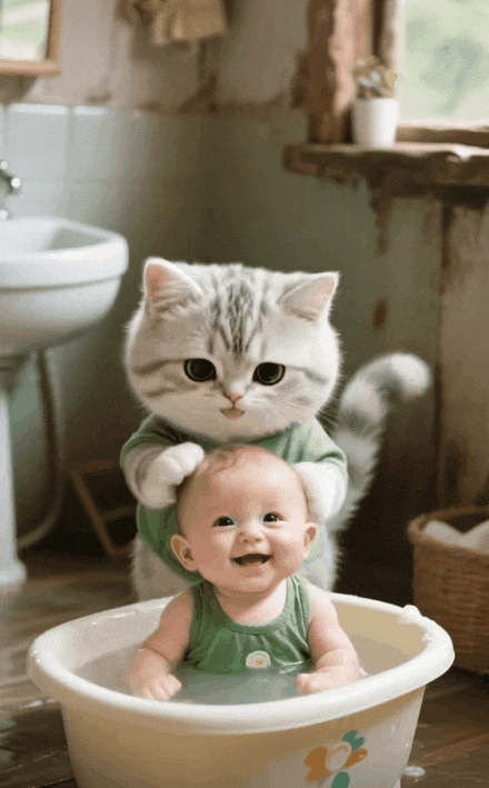 全能保姆美短,洗澡、餵奶、做菜、餵飯,就沒有它不會的。