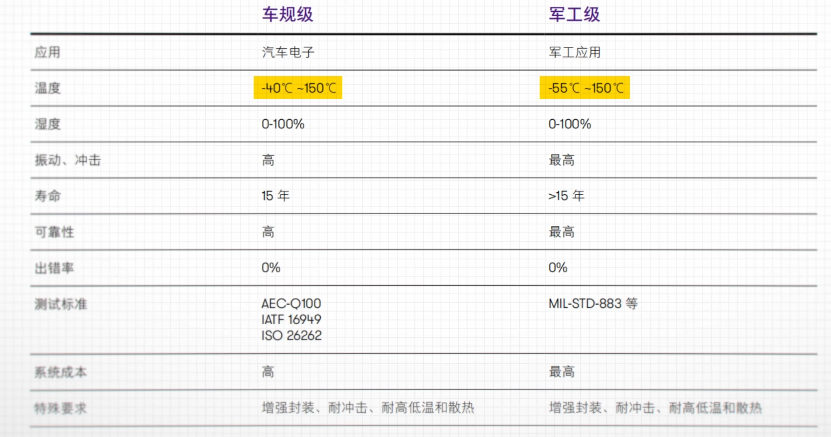 因為這些放在車裏的零部件相比消費級電子產品需要更頻繁的經歷複雜環境,所以它們對温度的要求天生就會更高,僅次於軍工產品。