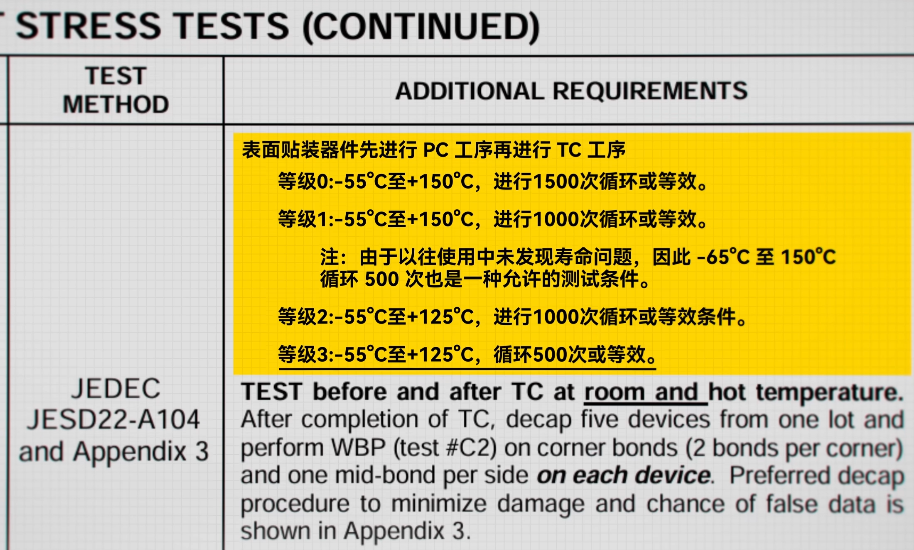 除了高温耐久測試,還有温度循環測試, grade3 級別的要經過零下 55 度到 125 度的循環 500 次。 grade 0 更是得扛住零下 55 到 150 度的循環 1500 次。
