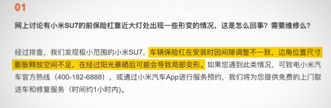 至於小米 SU7 因為天太熱導致大燈的框架變形,那也不是因為覆蓋件的材料本身有問題。