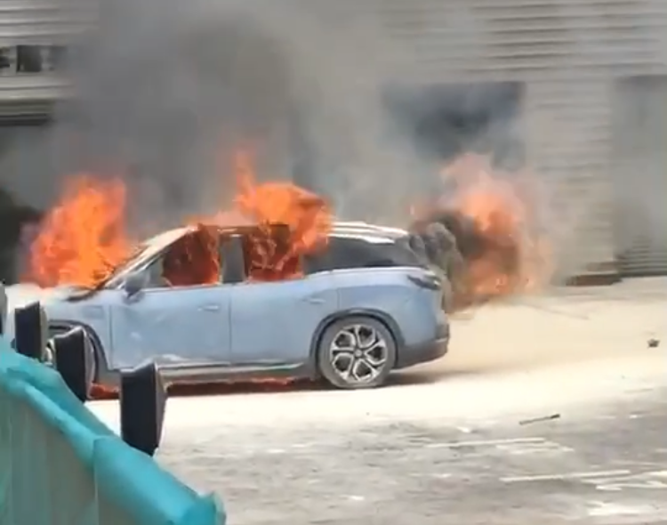 就比如説很多曬着曬着就燃起來的壓根就不是汽車零件,像西安一台蔚來的 ES8 在停車場停着停着冒煙燒起來了,很多人就説哎呀這車自燃!