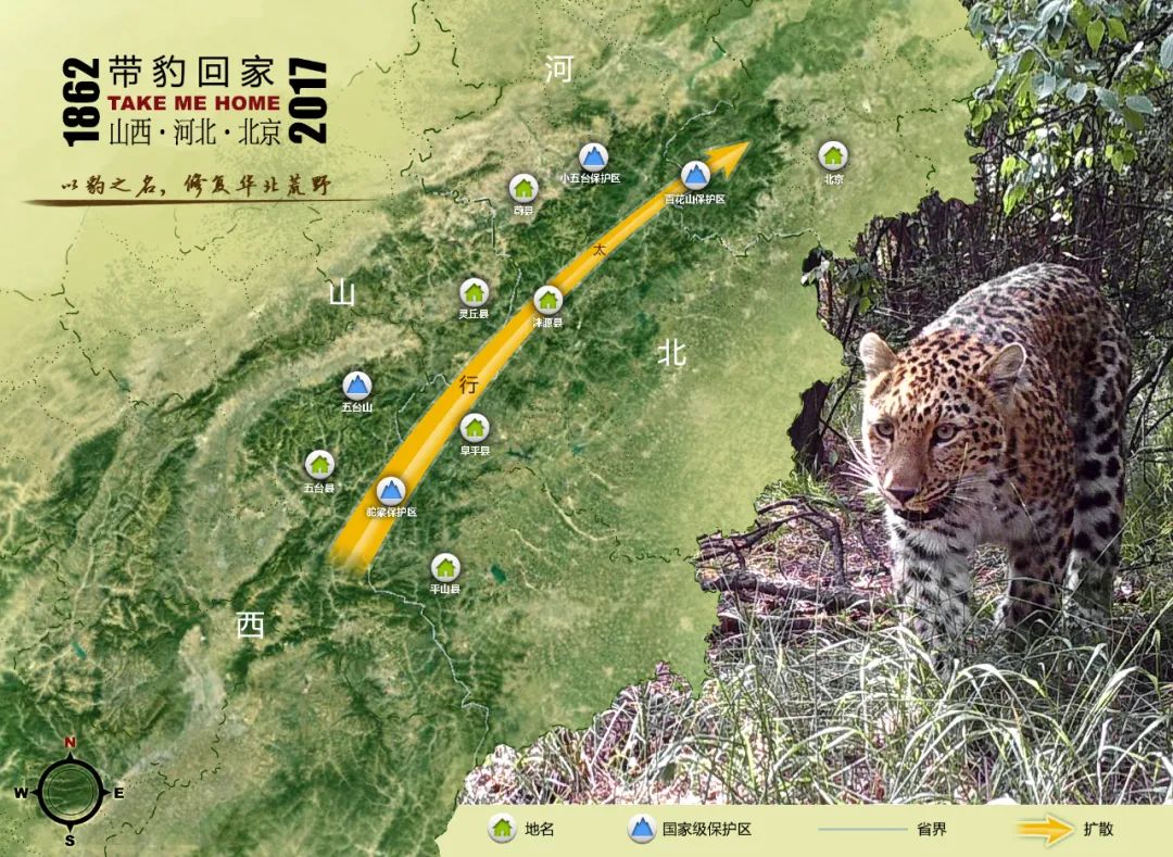 2017年起,我們發起帶豹回家工程,開始關注太行山到燕山的華北山地;2023年底,與北京市企業家環保基金會共同發起成立帶豹回家專項基金,希望形成社會合力,保護關鍵種羣和修復棲息地,重新幫助太行山到燕山的華北豹種羣自然擴散恢復,回到華北豹模式標本的老家“北京”。