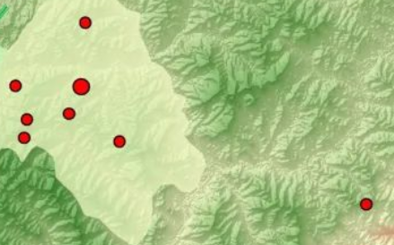 東鄉豹的拍攝地點,紅點表示拍到豹的相機點
