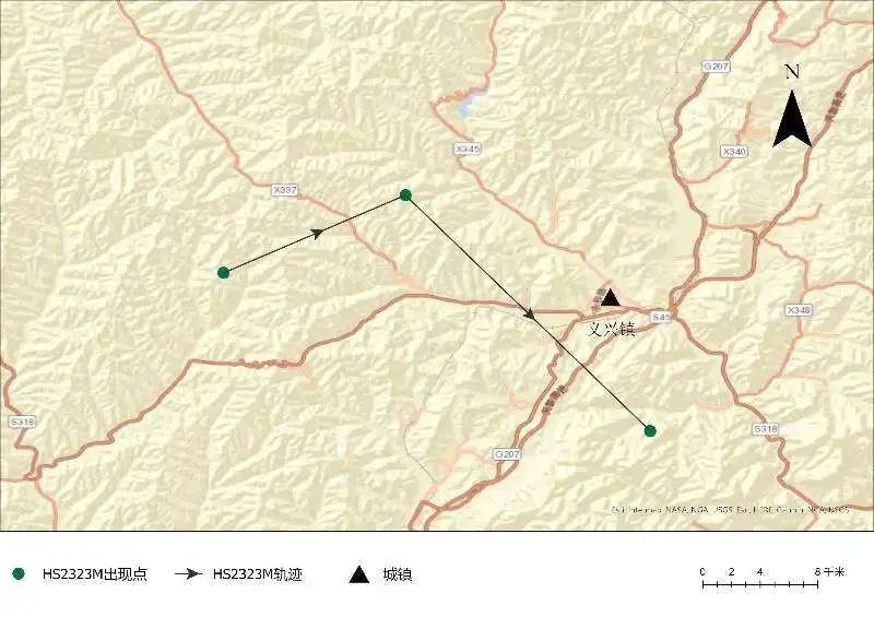 HS2323M是HS1603F(F9)的娃,和HS2401M同於2022年出生,在螞蟻森林保護地長大,向西越過榮耀石到達榆次,然後又折返,花了一年時間越過和順縣城、高速公路、鐵路和大片農田,來到東鄉。