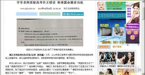 記得因為高考正在進行時,出於“保密”之需,浙江省教育考試院動用有關宣傳部門合理“禁言”的權力,第一時間刪除我的專欄文章,連那篇記者的消息也在屏蔽之列,現在網搜看到的系倖存而漏網者。