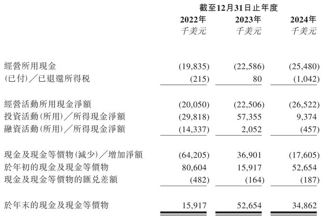 2024年末撥康視雲的現金儲備3486萬美元,按1.5倍消耗率測算僅能維持10個月;至2025年4月現金鋭減至2234萬美元,被迫新增304萬美元短期借款。