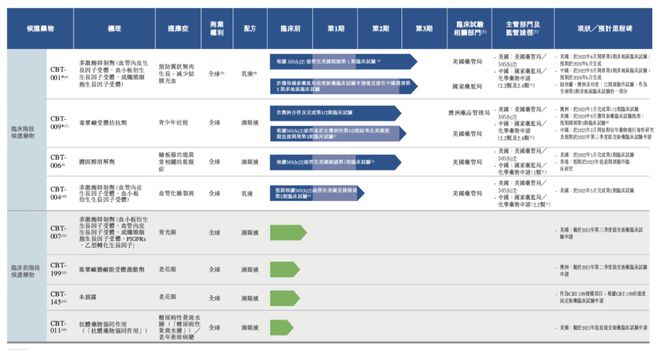在眼科領域上,撥康視雲採取了“同類首創”(First-in-Class)與“同類最佳”(Best-in-Class)的雙軌策略。撥康視雲已建立由八種候選藥物組成的創新管線,覆蓋眼睛前部和後部主要疾病,其中四款處於臨牀階段(CBT-001、CBT-009、CBT-006和CBT-004),四款處於臨牀前階段。這種全面佈局的策略使撥康視雲在細分賽道中具備了獨特的技術壁壘。