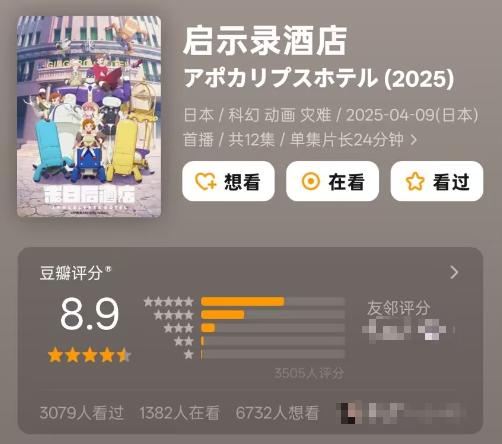 《末日後酒店》是這個季度最出色的動畫之一,豆瓣8.9分,bangumi 8.2分都足以説明這一點。但你能發現很奇怪的一點,《末日後酒店》雖然評分領跑,但在聲量上又明顯比不過其他原創動畫,在這個季度名不見經傳。