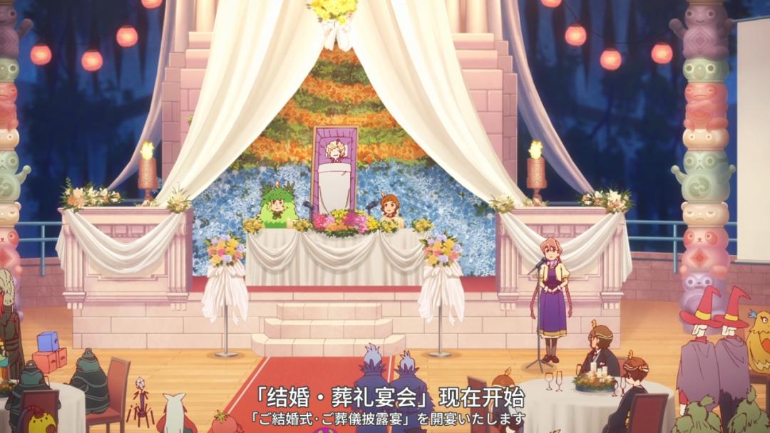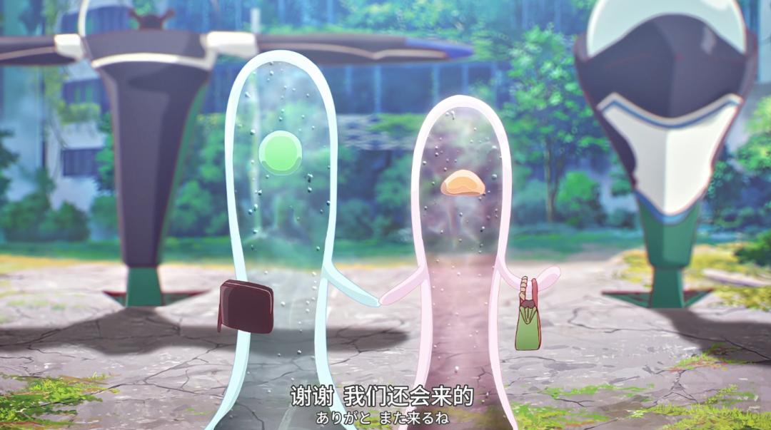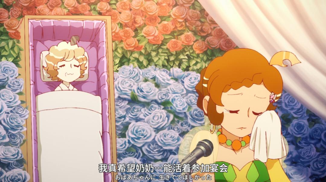 到這裏一切都稀鬆平常,直到八千代拿出外婆的留信,最荒誕的解決方式出現——喪事喜辦,這羣外星人決定將婚禮與葬禮合併,兩場典禮同期舉行。然後就看到前面是一對人牽手,後面跟着機器人抬棺的抽象畫面。