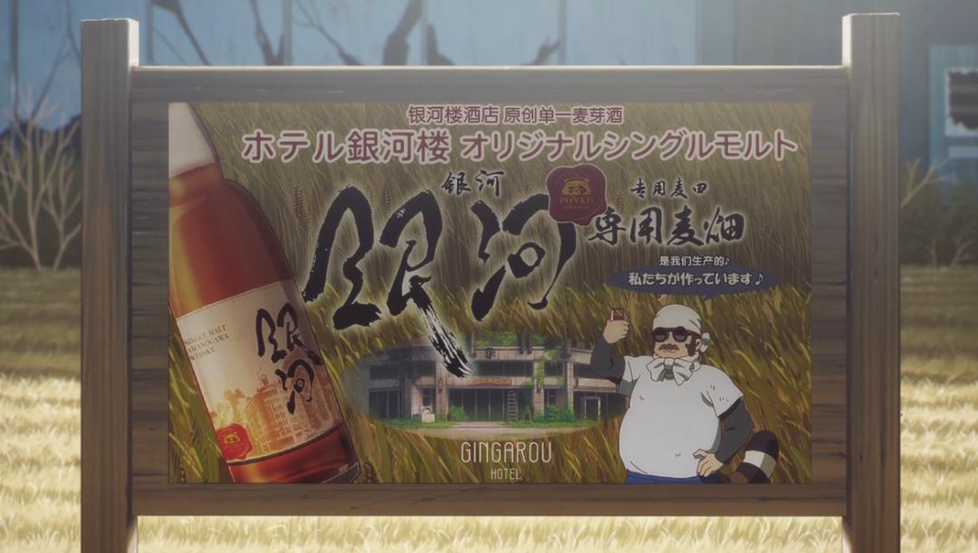動畫的第五集,講述酒店為了釀造一瓶極品威士忌,八千代和狸貓一家種植原料,搭建酒廠,努力試錯了近百年,才做出符合心意的威士忌。