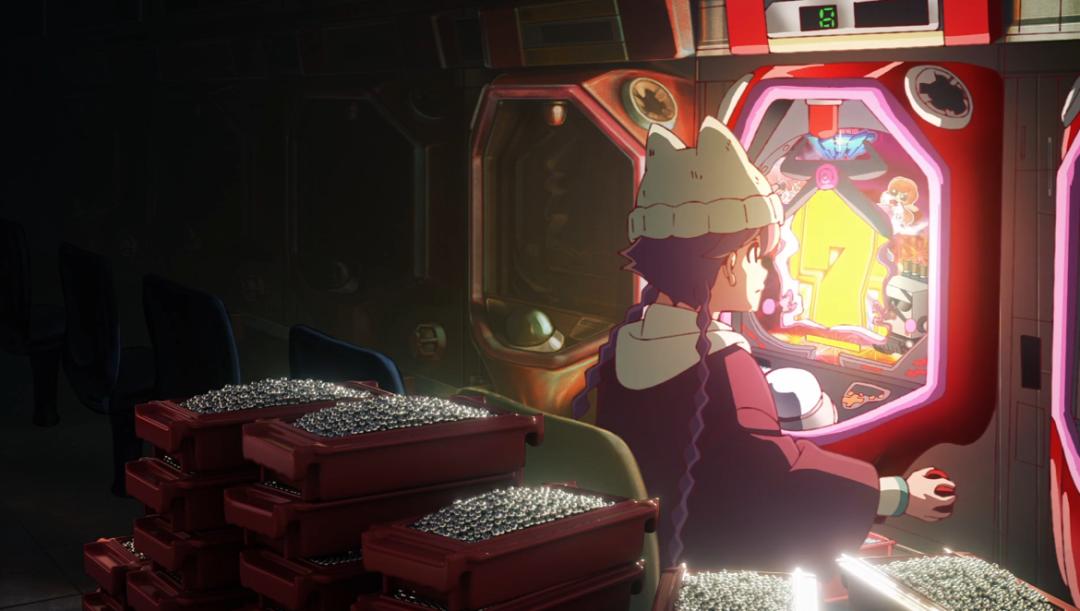 在另一個城市,她去了KTV,拿着話筒坐在沙發上發呆;玩了柏青哥,背後一盒又一盒的小鋼珠堆成了山。