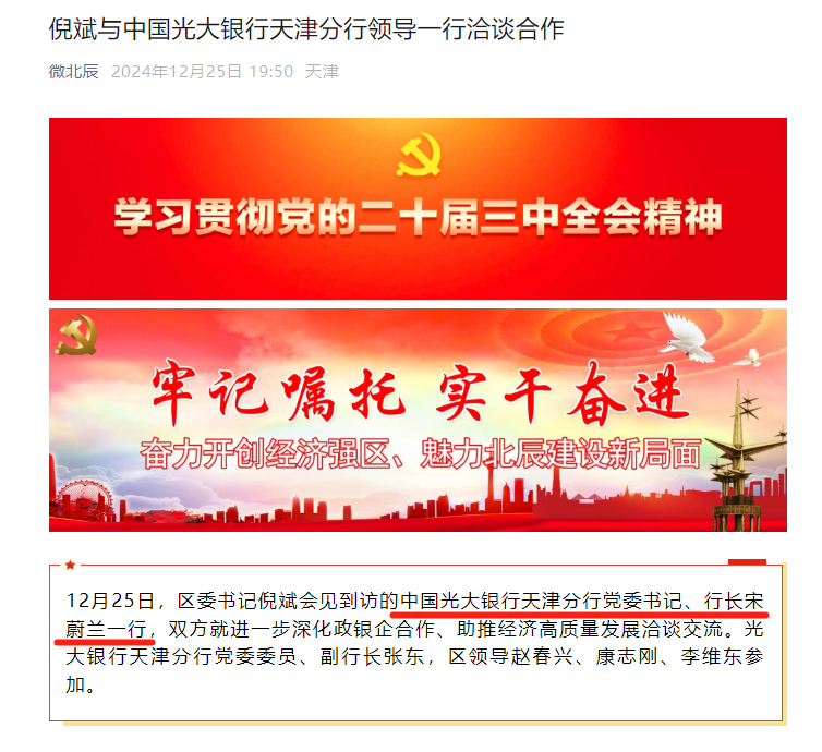 至於上面提到的宋蔚蘭,是不是光大銀行天津分行的行長,從外界信息來看,的確很難判斷。