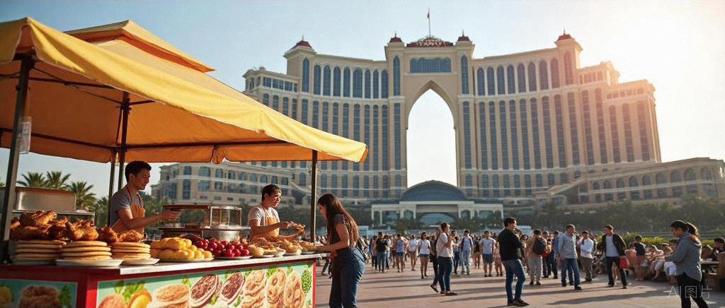 不遠處,沙漠春天酒店和東沙民生酒店也跟上,把滷雞爪和醬肘子攤得滿滿一桌。