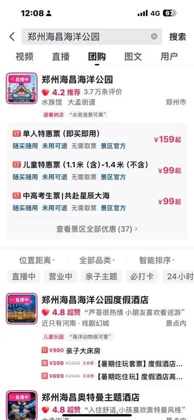 除此之外,對於今天預算和時間都十分緊湊的暑期文旅消費者來説,選擇景點並最終下單是一個相當長鏈條的決策研究過程,而這時,抖音團購提供了優惠價格和完整的評論鏈條。
