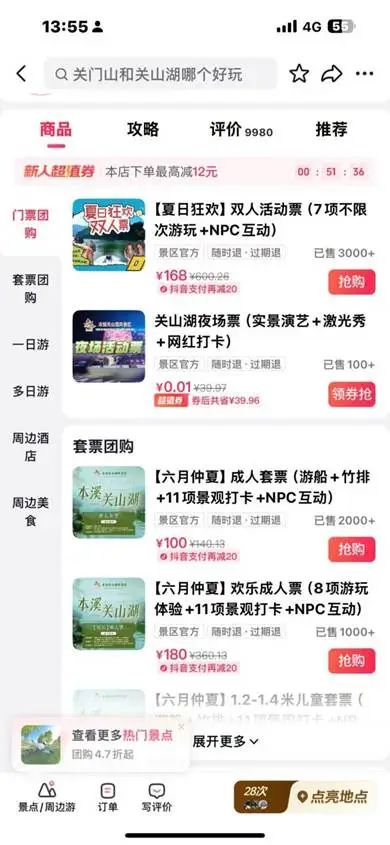 好奇的網友不難發現,不僅僅是光頭免票,天目湖景區在抖音團購中的團購價格也相當有競爭力,這直接轉化了那些有衝動的消費者。