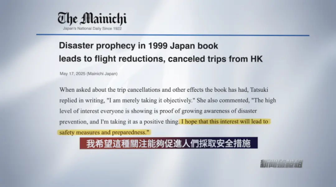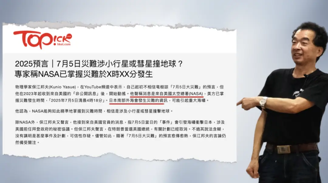 據鳳凰衞視報道,自3月開始,一則關於“2025年7月5日,日本將發生大災難”的消息就在網絡上廣泛傳播,隨後就引發了日本旅遊業爆冷以及不少民眾的恐慌。據5月1日《日本日報》給出的數據顯示,僅在YouTube一家平台上,有關“日本大災難預言”的視頻就超過1400個,播放總次數超過了1億次。