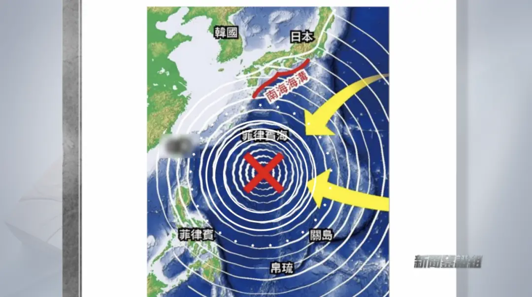 註釋中寫道:用能瞭解海底地形的地圖來看,就很容易懂——以震中區來看,北起日本、西至中國台灣地區,南到印尼的莫羅泰島,東邊是北馬裏安納羣島的這塊菱形區域的中心,距離這個震中區遙遠的東邊,換日線附近到夏威夷羣島的海底。