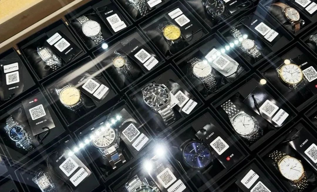 和包袋區一樣,這些產品都可以自主挑選,自助選購,用户可以掃描產品標籤上的二維碼在“超級轉轉”小程序進行查價,產品頁面上有詳細的鑑定報告、瑕疵點位展示以及生產年份、是否有保卡附件等詳細信息。