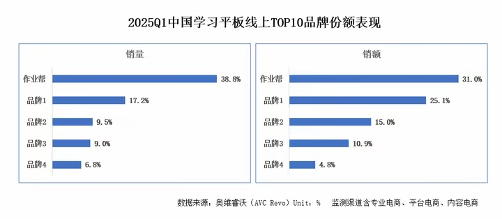 公開資料顯示,2025年Q1學習機市場TOP10品牌中,教育科技陣營(作業幫/學而思/小猿)合計佔比超60%,贏得相對良好的市場反饋,例如,學而思九章在用户滿意度上就達到了85分,彰顯K12教育企業在內容領域的絕對優勢。