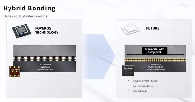 當時英特爾表示其3D Foveros立體封裝技術,可以讓邏輯芯片可以堆疊在一起,而其中的凸點間距在50微米左右,每平方毫米集成大約400個凸點,而應用新的混合鍵合技術,凸點間距縮小到10微米,每平方毫米的凸點數量更能達到1萬個,增加了足足25倍。