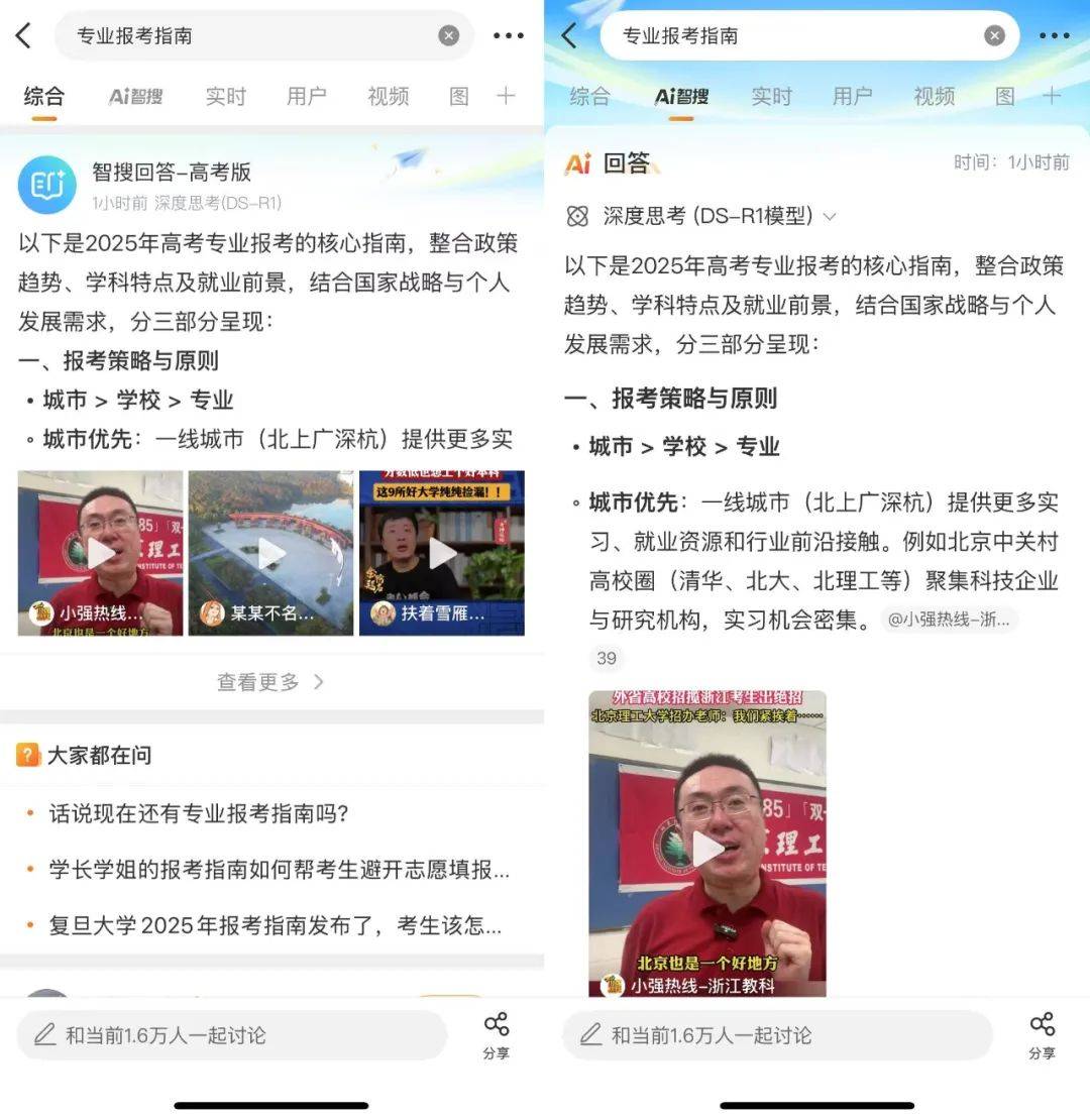 而智搜賦予微博高考服務的質變,在於它讓AI完成了從「信息整理者」到「洞見連接者」的身份躍遷,通過信息提煉,用户不再只能與冷冰冰的搜索框打交道,而是可以直接用微博智搜一鍵觸達成百上千個真人博主。