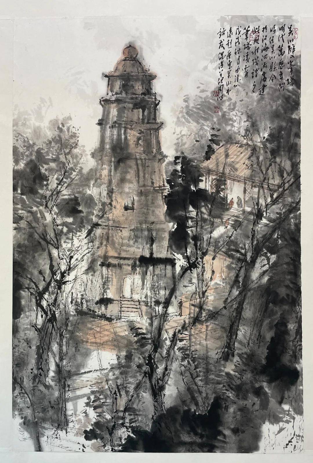 《吳川雙峯塔》 周波 68cmx46cm 中國畫