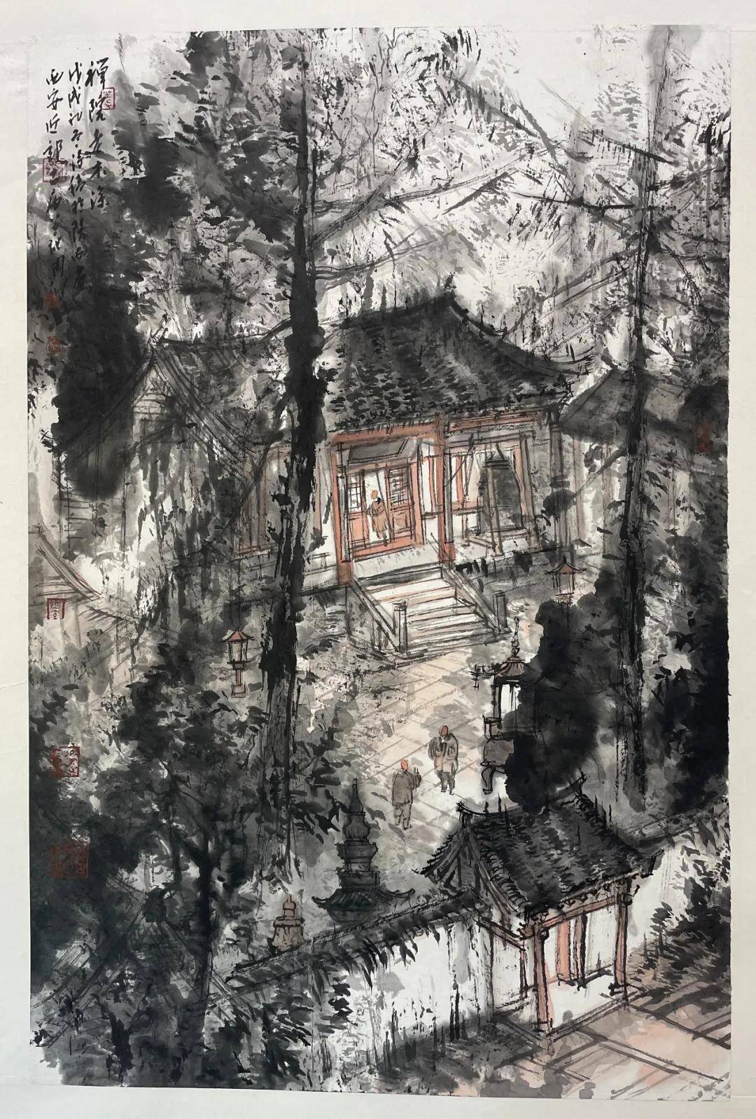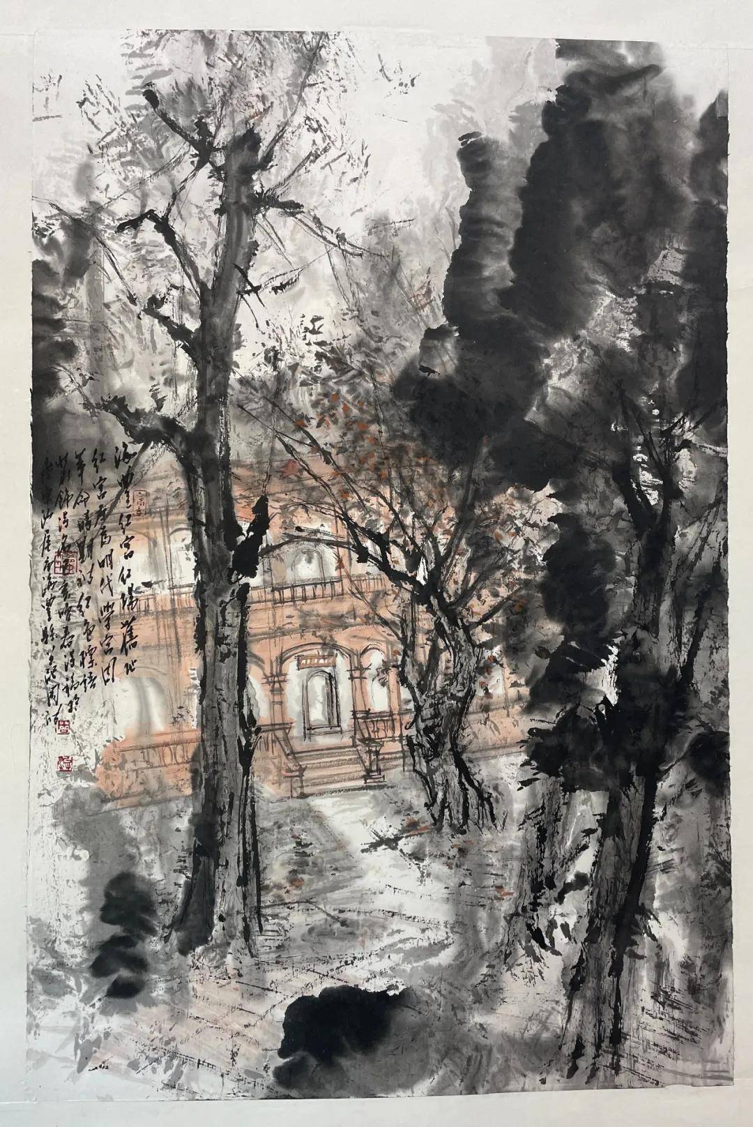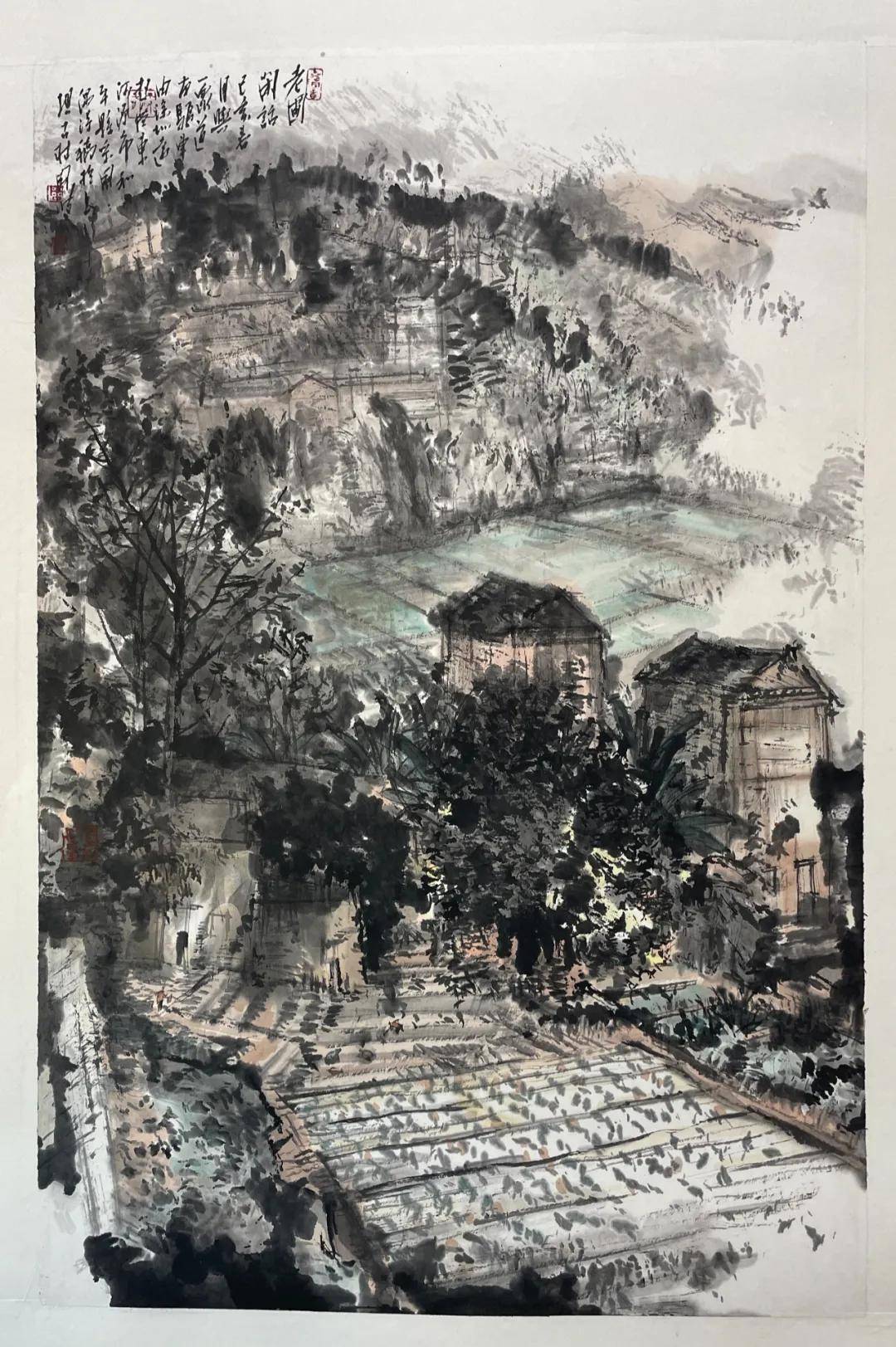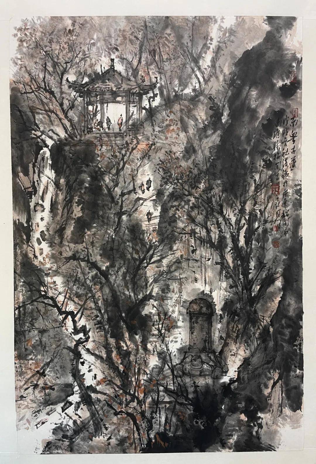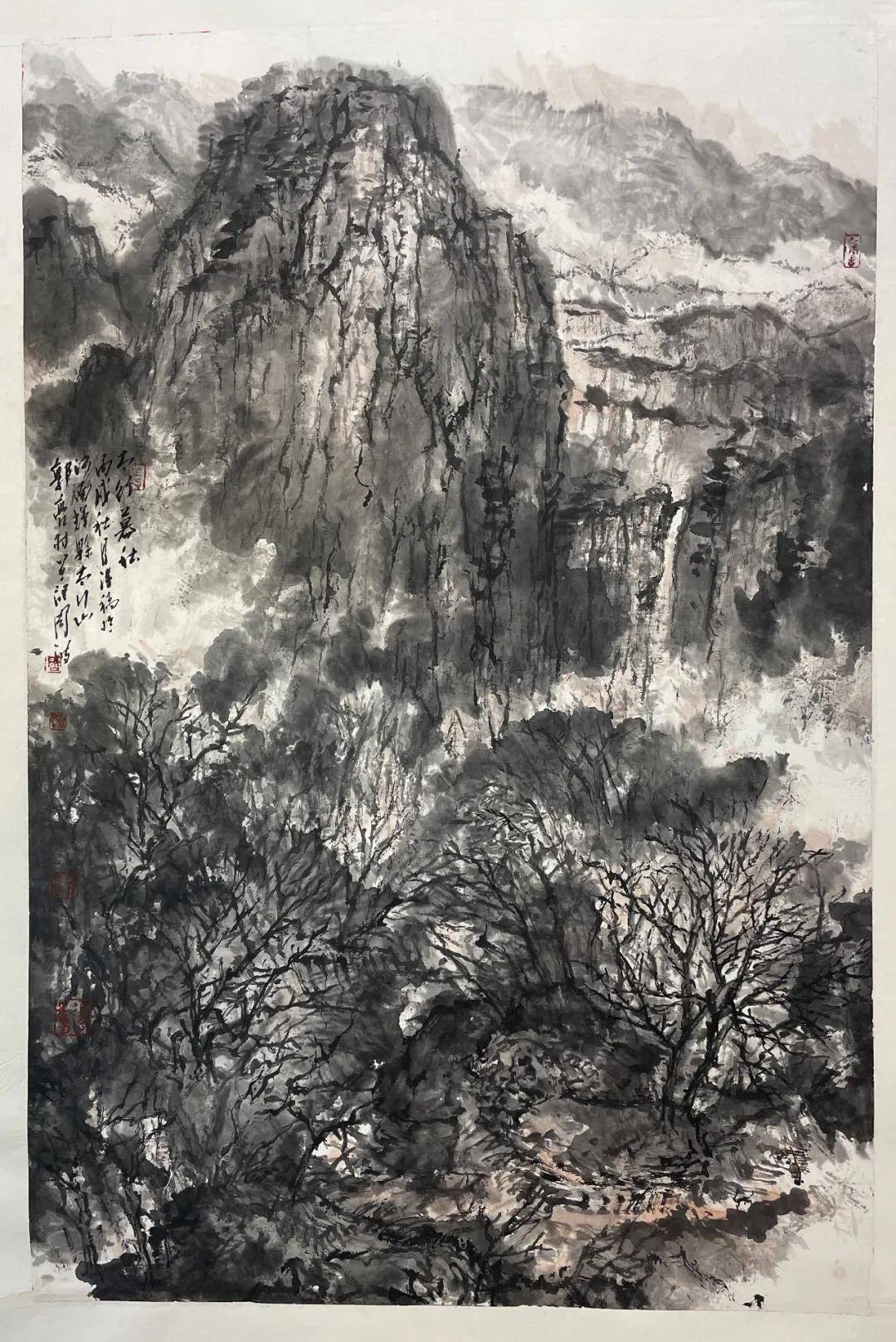 這些作品的創作足跡遍佈大江南北,既有廣東信宜、和平、南雄、吳川、海豐等地的嶺南風情,也記錄了陝西西安的歷史厚重、河南太行山的雄渾壯闊。他以獨特視角與精湛筆墨,將自然的磅礴靈韻與人文的深邃意趣,盡數凝於水墨丹青之間,盡顯“大景大觀”的恢弘氣象,以饗觀者。