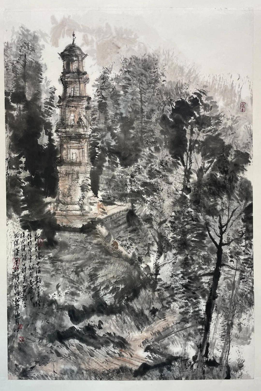 《龍口宋塔》 周波 68cmx46cm 中國畫
