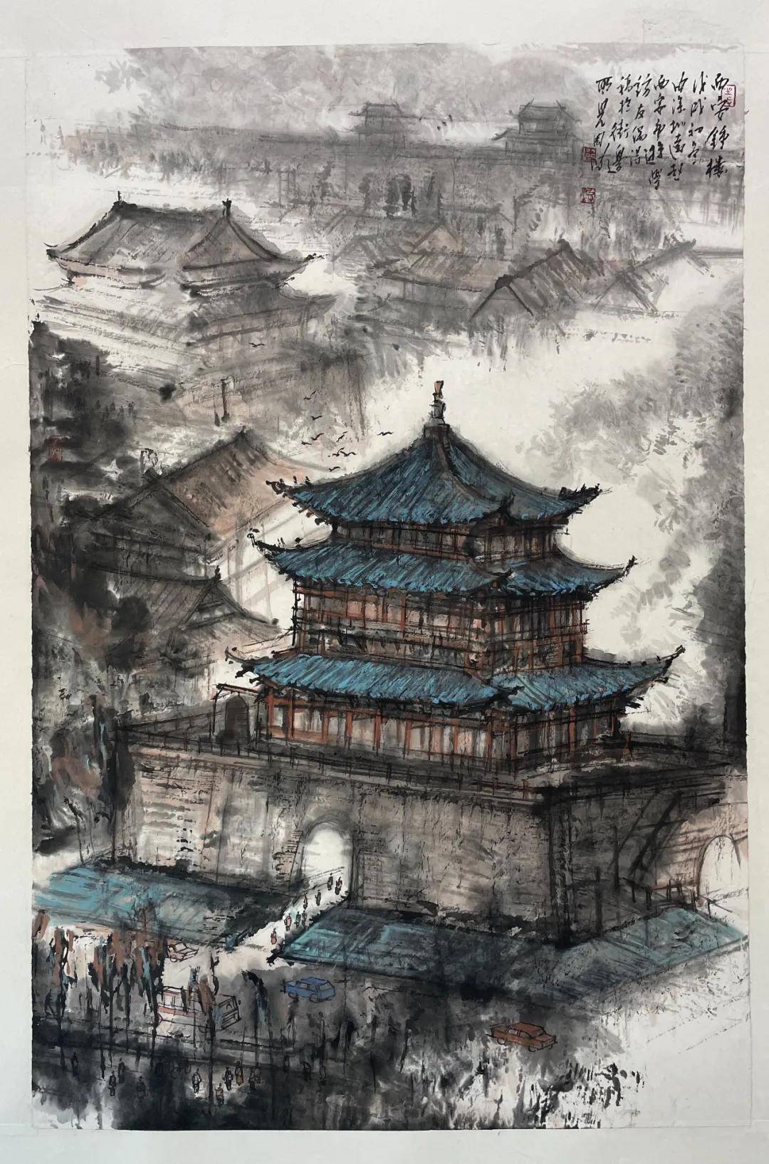 《西安鐘樓》 周波 68cmx46cm 中國畫