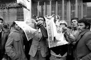 1980年,伊朗示威者撕毀霍梅尼畫像