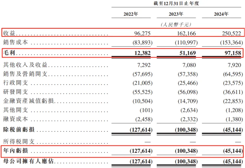 財務數據方面,2022年、2023年及2024年(報告期),公司的收入分別為9630萬元、1.62億元、2.51億元,同期毛利率分別為12.9%、31.6%、38.8%,有所上升。