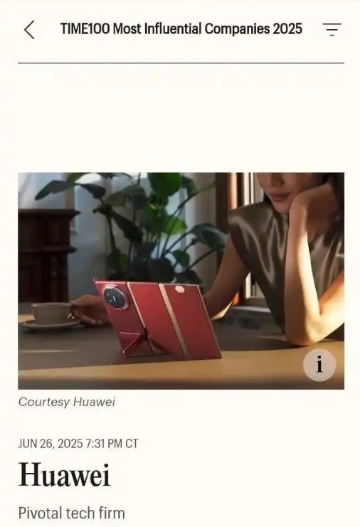 光明網:《時代》週刊公佈2025年“全球100大最具影響力企業”榜單,華為等中企入選