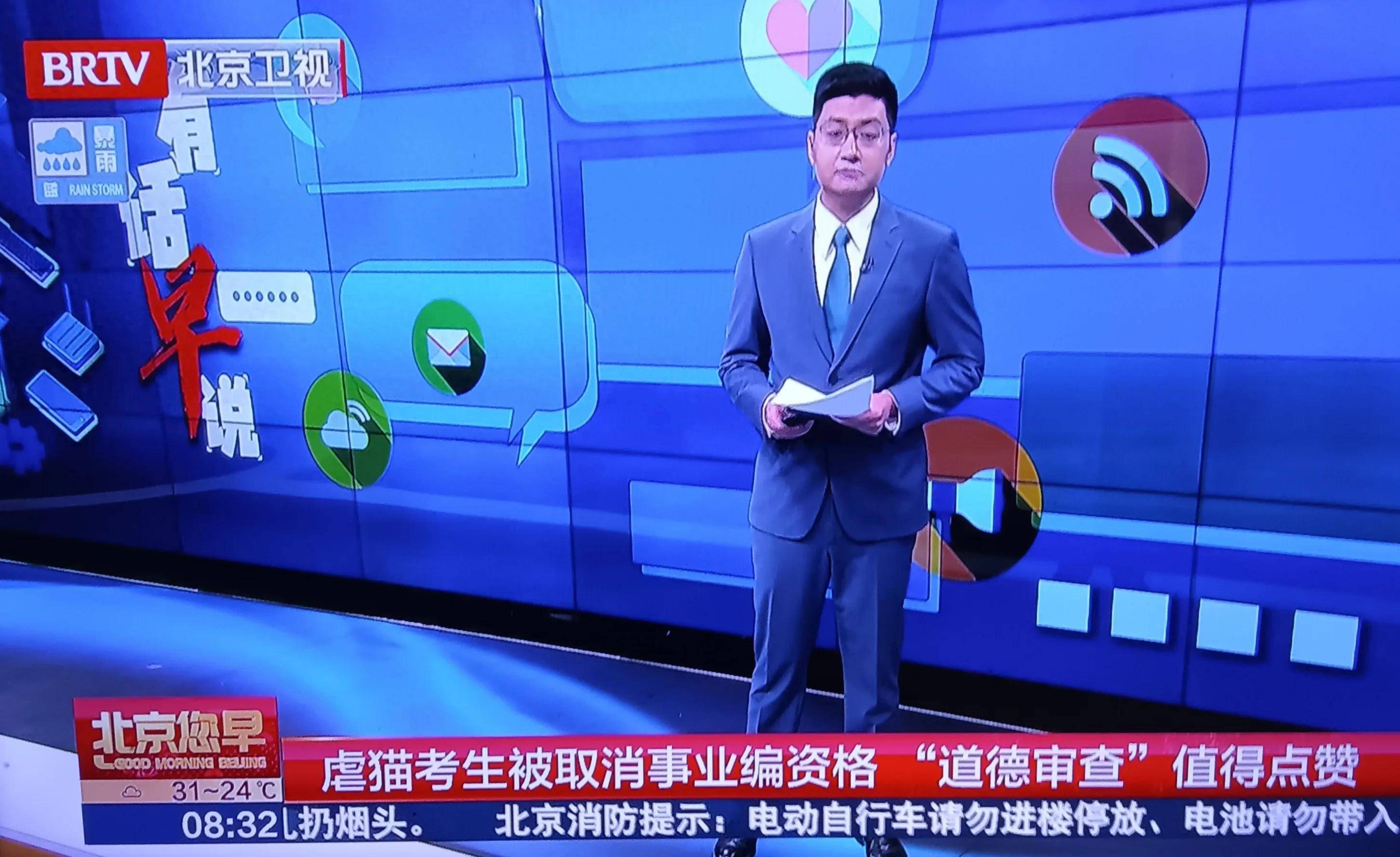 電視裏播報這一事件的時候,主持人對此考生的遭遇,給以了讚揚,稱之為必要的處罰。與此同時,主持人還引用了網民的點評,及支持。雖然,主持人也説該考生今後或可有別的機會。