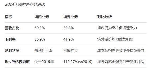 在國外市場上,錦江酒店收入佔比30.8%,在2024年為42.56億元,毛利率41.9%高於國內的36.9%。但是,連續五年虧損累計超3億歐元(約23.5億元),而2024年虧損擴大至5689萬歐元。其中,盧浮集團2024年營收5.56億歐元,淨虧損1079萬歐元;而高直營佔比(272家直營店)遭遇歐洲能源與人力成本飆升,錦江酒店固定成本承壓。