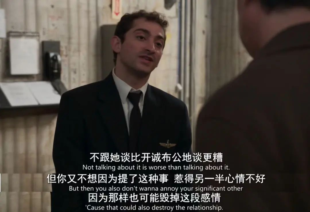 二人要進入駕駛艙,然後分別扮演機長和副機長,穆蒂要向女友説出自己的不安。