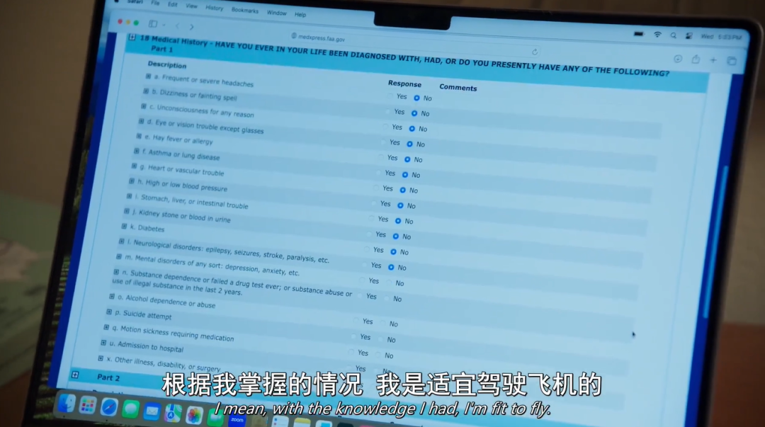 一旦在航空局的體檢表上坦白了自己有問題,哪怕只是小小的情緒問題,都肯定會被停飛。
