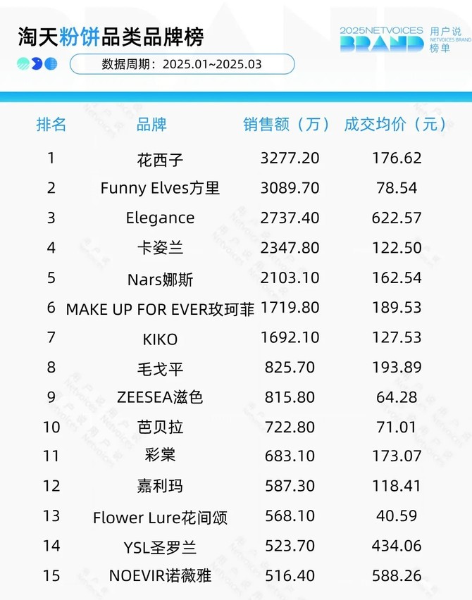 淘天粉餅品類品牌榜
