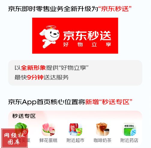 去年5月16日,京東即時零售業務全面升級推出京東秒送,整合原即時零售品牌京東小時達、京東到家,以全新的品牌形象“京東秒送”為消費者提供“好物立享”、最快9分鐘送達的購物體驗。