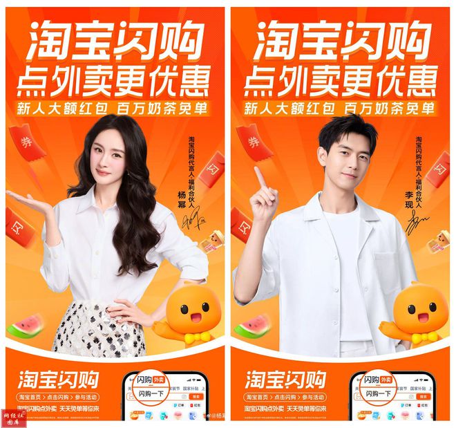 在消費者端,平台將通過發放大額紅包、免單卡、官方補貼一口價商品等方式,降低消費成本,提升用户體驗。例如,平台推出"百萬奶茶免單"活動,並聘請李現、楊冪等明星為其品牌代言人。