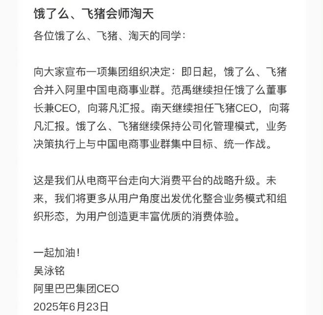 這也是繼6月23日蔣凡“收編”餓了麼、飛豬,併入阿里中國電商事業羣后的又一重大動作。