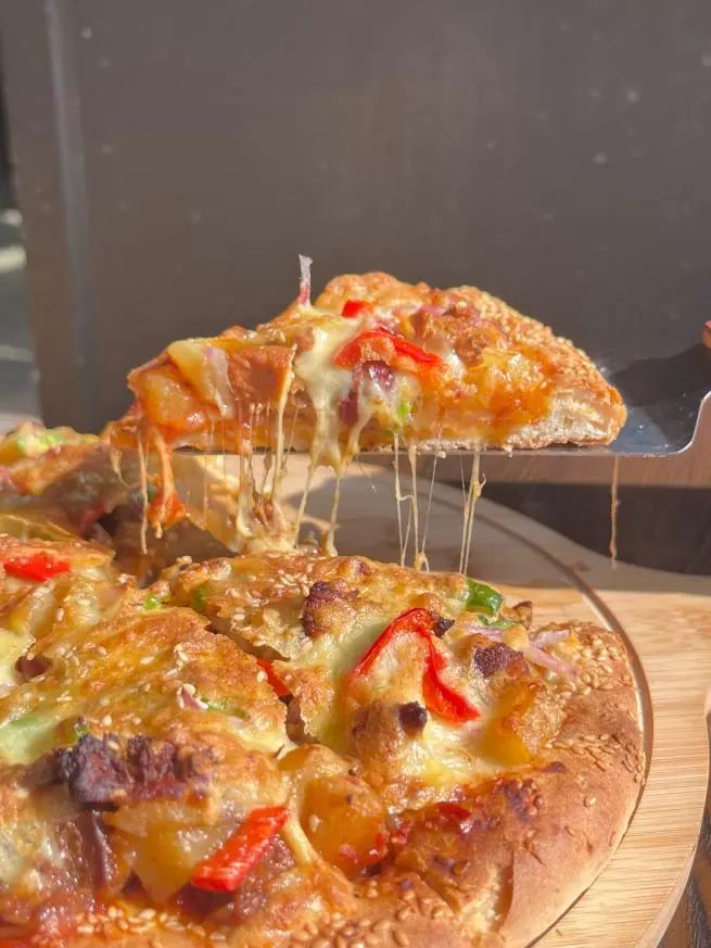 如今的饢更有新招:把饢掰塊兒鋪在烤盤底,澆上番茄燉羊肉,撒層厚厚的芝士,炭火慢煨中誕生的是“饢底披薩”。