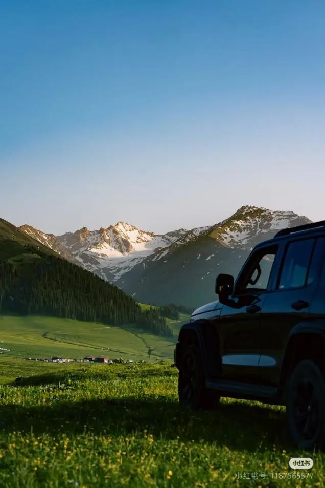 一頂頂帳篷像蘑菇般散落在綠毯上,新疆人的整個夏天,就在上山與下山的車輪間悠然流轉。