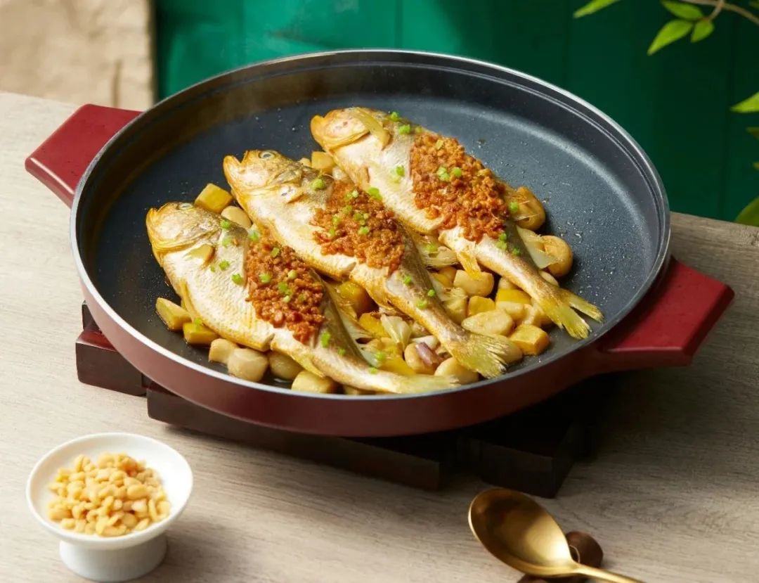 以粵菜解決方案中的一道海皇普寧豆醬焗黃魚為例,它在“地域風味”普寧豆醬的基礎上,預調融合了家樂海皇爆炒醬、家樂頭抽鮮上鮮釀造醬油等調味品的複合醬汁。廚師在烹飪時只需加入此預製醬汁,即可高效完成風味精準、品質穩定的出品,既實現了菜品的差異化創新,又保障了高效穩定的運營。